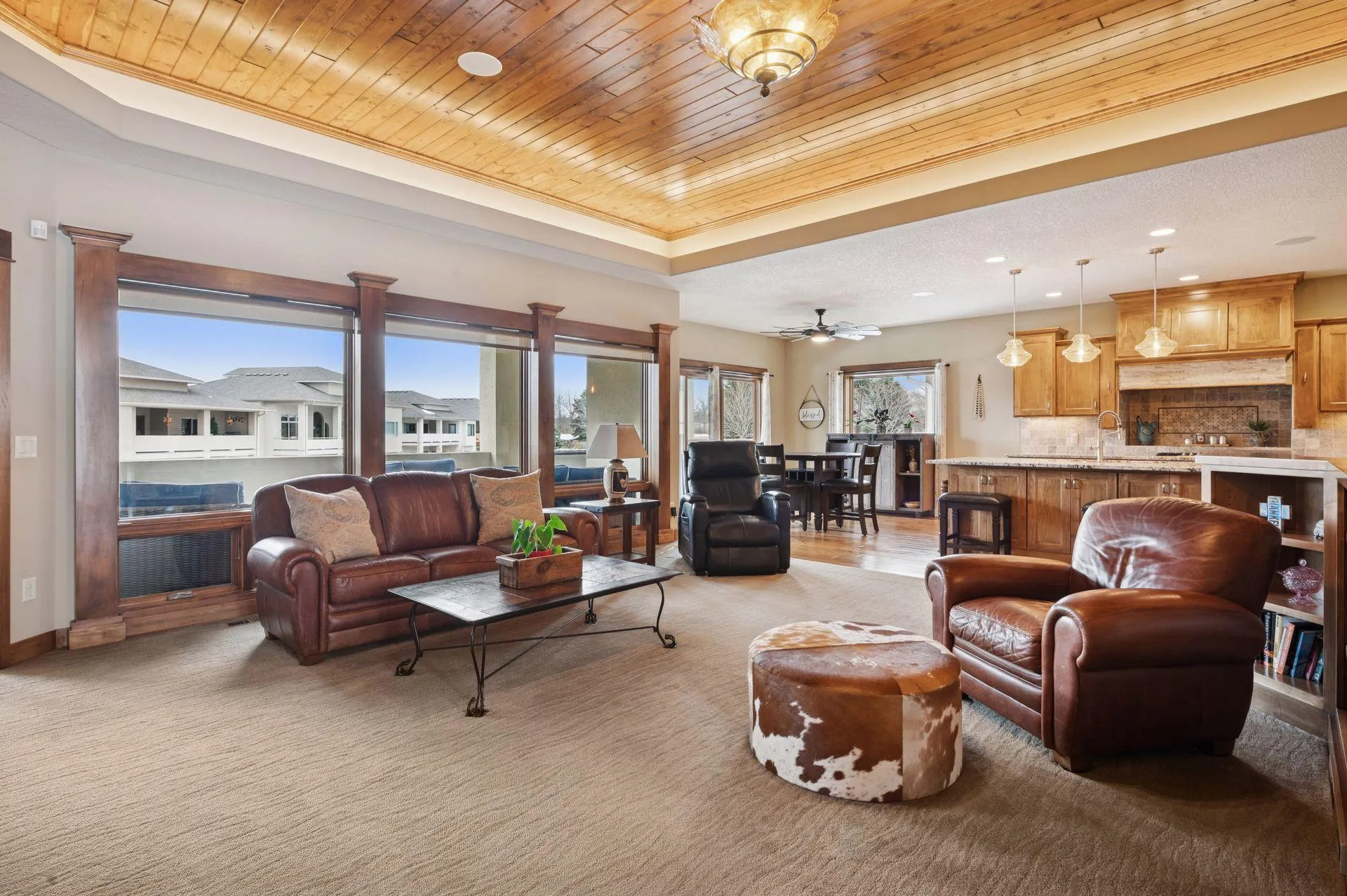 Luxury Living on the TPC: A Masterpiece in Blaine! Experience the pinnacle of one-level living in this stunning custom villa, where every detail has been curated for those who demand excellence. Whether you are hosting grand social gatherings or seeking a quiet sanctuary, this home delivers on every level—literally. Step into a Great Room that takes your breath away, featuring 12-foot ceilings with elegant accent lighting, a cozy gas fireplace, and massive windows that flood the space with natural light. The gourmet kitchen is a chef’s dream featuring hardwood floors, granite countertops, and a massive center island. The main-floor primary suite features a large walk-in closet and bath. The lower level is far more than just a basement—it’s a destination. Enjoy climate controlled bliss, as the sellers have recently installed heated floors throughout the basement, ensuring toes stay toasty even in a Minnesota winter. The lower level also features a tiled wet bar area for game days and entertaining, as well as a cozy reading nook for quiet afternoons. Flexibility is key with a second full suite option on the lower level. The transition from indoor to outdoor living is seamless, plus the patio features a rare built-in gas grill hookup. Enjoy breathtaking views: Step out from the dining area or primary bedroom onto the expansive deck, or walk out from the lower level to a covered patio. Both overlook a serene pond with a calming fountain — the seller’s favorite view — creating a private backdrop for unforgettable summer sunsets. Enjoy the luxury of light neighborhood traffic and the privacy that comes with TPC living. Thoughtful upgrades include a newly added water softener and meticulous maintenance throughout.