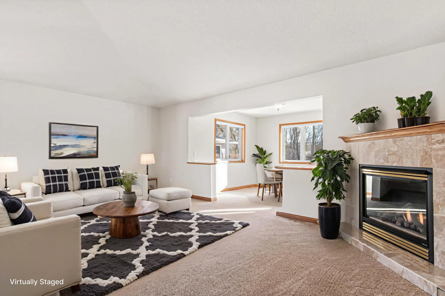 Rare 3BR, 2BA beautifully maintained townhome in a quiet, desirable Stillwater community offering maintenance-free living with association-managed lawn care and snow removal. Freshly painted! Bright, open main living space features vaulted ceilings, abundant natural light, and a cozy gas fireplace. Adjacent dining area flows into the well-appointed kitchen with generous cabinetry and workspace. Sun-filled sunroom opens to a private patio with peaceful wooded views — perfect for relaxing or entertaining. Spacious primary bedroom plus two additional bedrooms provide flexible space for guests, home office, or hobbies. Insulated 2+ car garage includes built-in cabinets and pull-down attic storage. New steel siding and roofs installed in 2020. Located minutes from parks, trails, shopping, dining, historic downtown Stillwater, and a neighborhood park just one block away. Move-in ready! *some rooms virtually staged