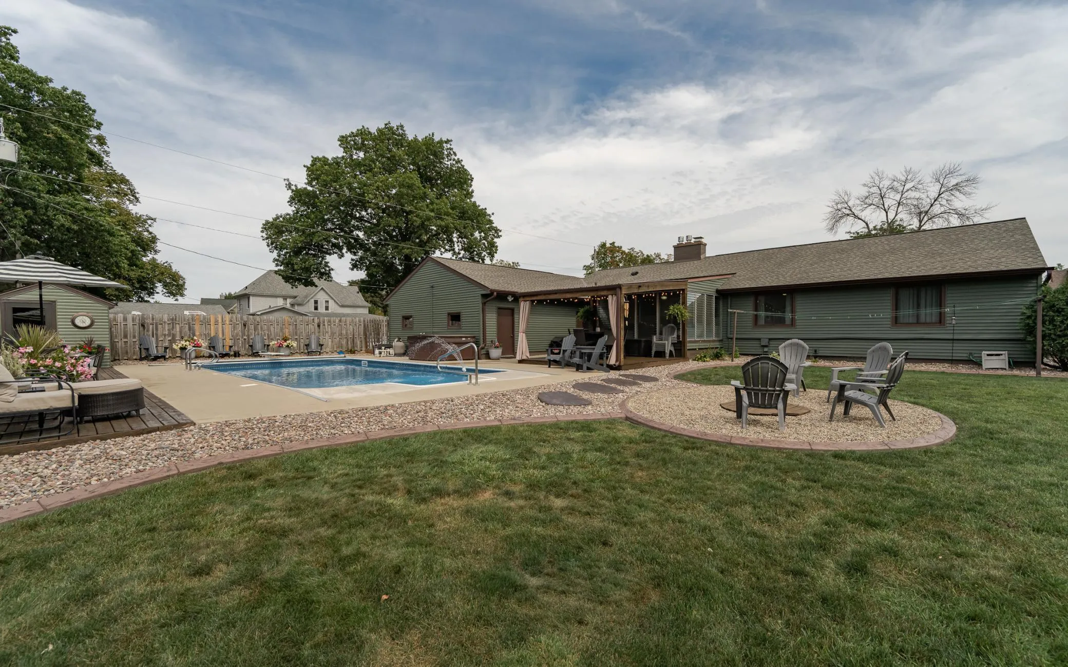 This beautifully updated home is a true standout, thoughtfully improved, meticulously maintained, and designed for both everyday comfort and memorable entertaining. The kitchen is a showpiece, featuring newer cabinetry, granite countertops and backsplash, and updated appliances, while the inviting three-season sunroom seamlessly extends the living space outdoors. Step into an incredible backyard retreat complete with a spacious patio, pergola, deck, hot tub, pool deck, ample storage, and a sparkling in-ground pool – an entertainer’s dream. Inside, the bathrooms have been tastefully updated with timeless selections, including a stunning walk-in tiled shower and fresh, cohesive finishes throughout. Real hardwood floors add warmth and elegance, complemented by two cozy gas fireplaces anchoring both the living and family rooms. The lower level offers flexible living options with space for a home office, gym, or additional family room, while the current den easily functions as a fourth guest area. An oversized laundry room with a durable Polytech floor adds both function and convenience. With an updated roof, siding, and gutters and a level of care evident throughout, this home sits on a lush .40-acre lot with a private, fenced backyard. The unique three-car garage setup provides over 1000 square feet of space, offering exceptional storage, parking, and versatility. This is a rare opportunity to enjoy modern updates, exceptional outdoor living, and a warm, welcoming atmosphere all in one remarkable property. Homes like this don’t come along often!