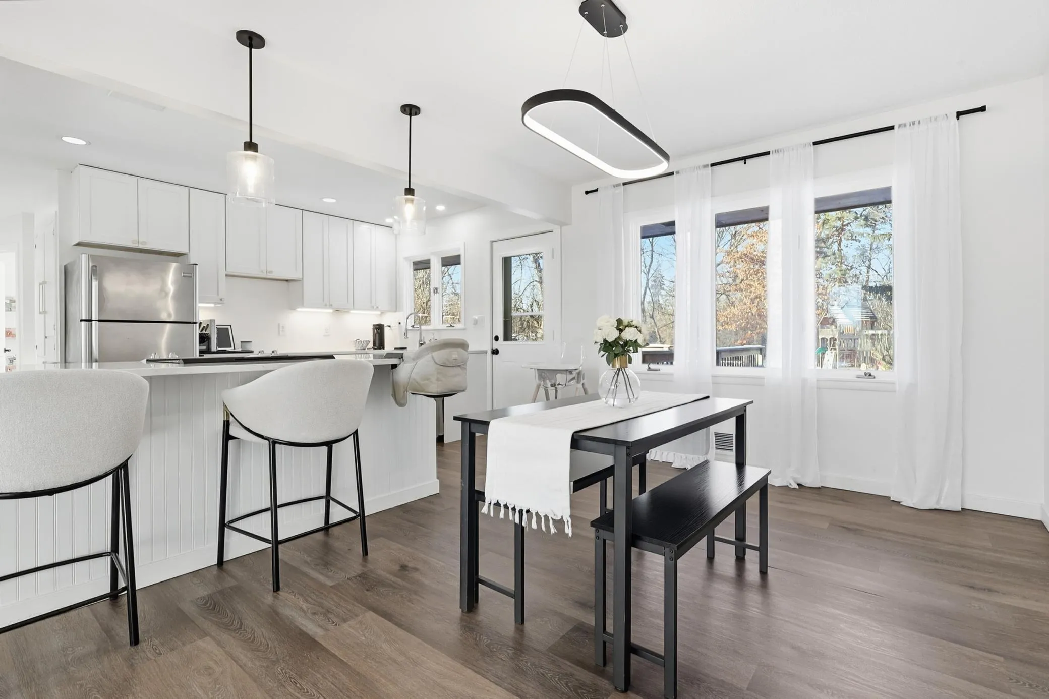 A beautifully updated home in a prime Hopkins/Minnetonka location, just minutes from downtown Hopkins with quick access to Highway 7. Set on a private ½-acre lot, this 3-bed, 2-bath home offers a smart, functional layout ideal for both daily living and entertaining. The remodeled kitchen features luxury cabinetry, updated countertops, modern lighting, and stainless steel appliances. Two bedrooms and an updated full bath are located on the upper level, while the private lower-level owner’s suite includes a walk-in closet and ¾ bathroom—perfect for added privacy or flexible living needs. Additional highlights include modern paint and lighting throughout, a newer roof (2021), a large 2-car garage, and a spacious backyard with room to relax or grow. A move-in-ready opportunity in a highly desirable west metro location close to shops, dining, and trails.