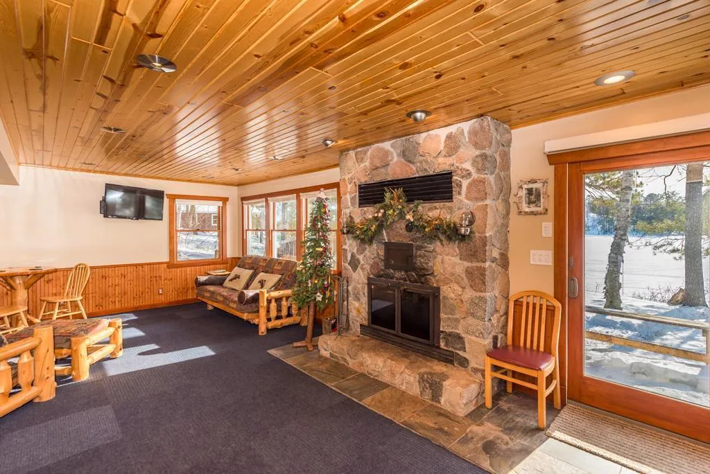 This charming year-round IXL Lake retreat is situated near the water’s edge with nearly an acre of privacy and 195 feet of natural shoreline, gradual elevation, beautiful lake views, impressive water clarity with lake depths reaching 40 feet…ideal for swimming, fishing and relaxing boat tours. Nestled beneath a canopy of mature hardwoods and Pines is this quaint cabin offering a classic stone wood-burning fireplace, custom kitchen cabinetry, a wall of lakeside windows, slate stone flooring and a warm tongue-and-groove interior. Relax and enjoy the views from the 3-season porch, featuring cathedral-beamed ceilings…or step outside to the lakeside paver patio and experience the serenity of the natural surroundings. This is a spectacular setting with room for future expansion or your new Up-North Dream Home…pack your bags and head to the lake!