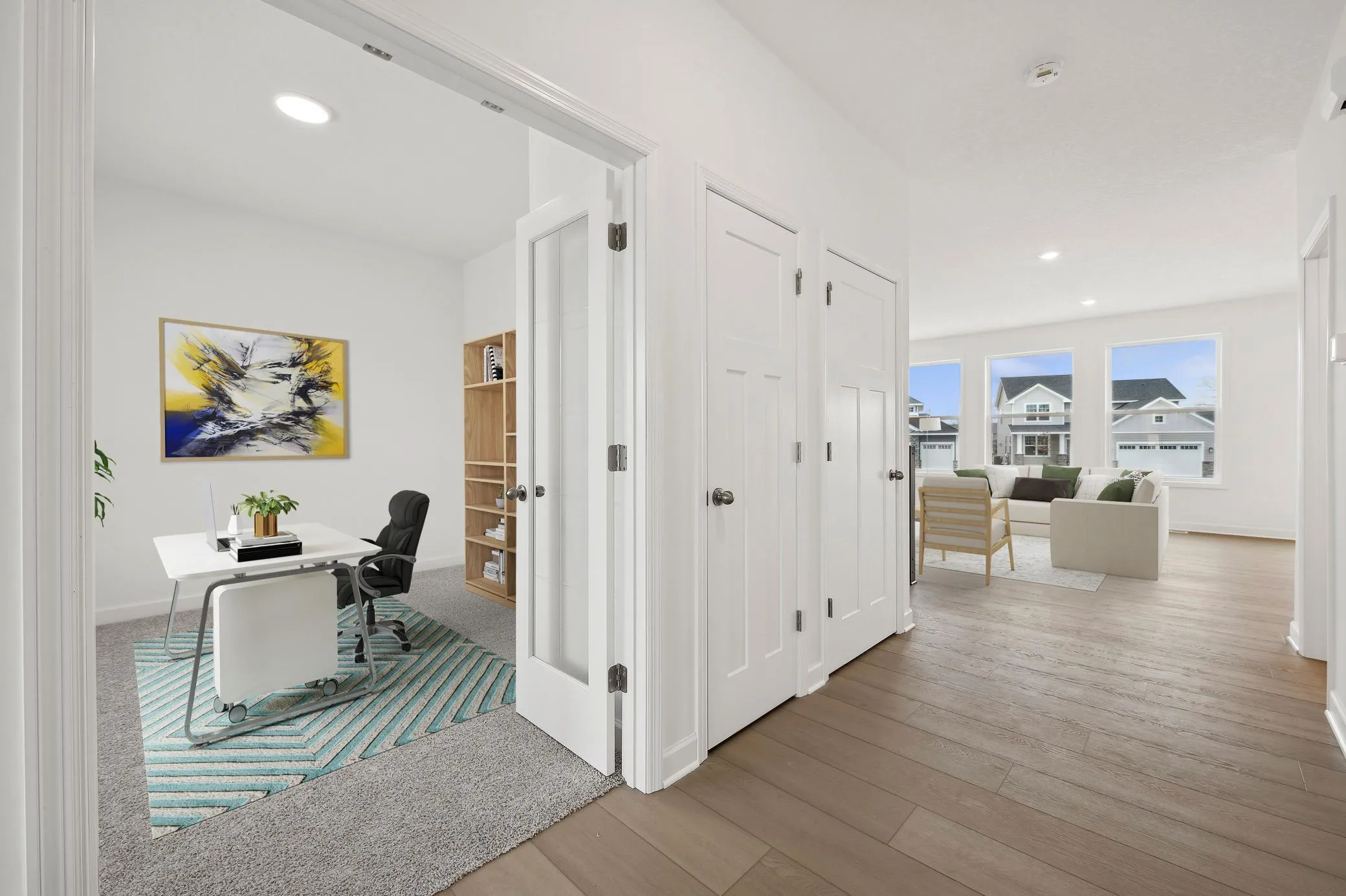 This home is available for an April closing date! The Sinclair floorplan combines modern comfort with thoughtful design in an open-concept layout that seamlessly connects the kitchen, informal dining area, and Great Room. The kitchen serves as the heart of the home, featuring a center island, quartz countertops, a stylish tile backsplash, a walk-in pantry, and clear sightlines to the Great Room, where a cozy stone gas fireplace adds warmth and character. Upstairs, four spacious bedrooms, a convenient laundry room, and a luxurious primary suite with a soaking tub, separate shower, and walk-in closet provide both comfort and functionality. The main level also includes a flexible study or home office and a mudroom with a walk-in closet for extra storage. A finished exterior features a fully sodded yard, front landscaping, and an irrigation system—all included. For future growth, the home offers an unfinished lookout basement, perfect for adding additional living space. Ideally located near shopping, dining, and Hwy 169, the Sinclair delivers the perfect blend of style, space, and everyday functionality.