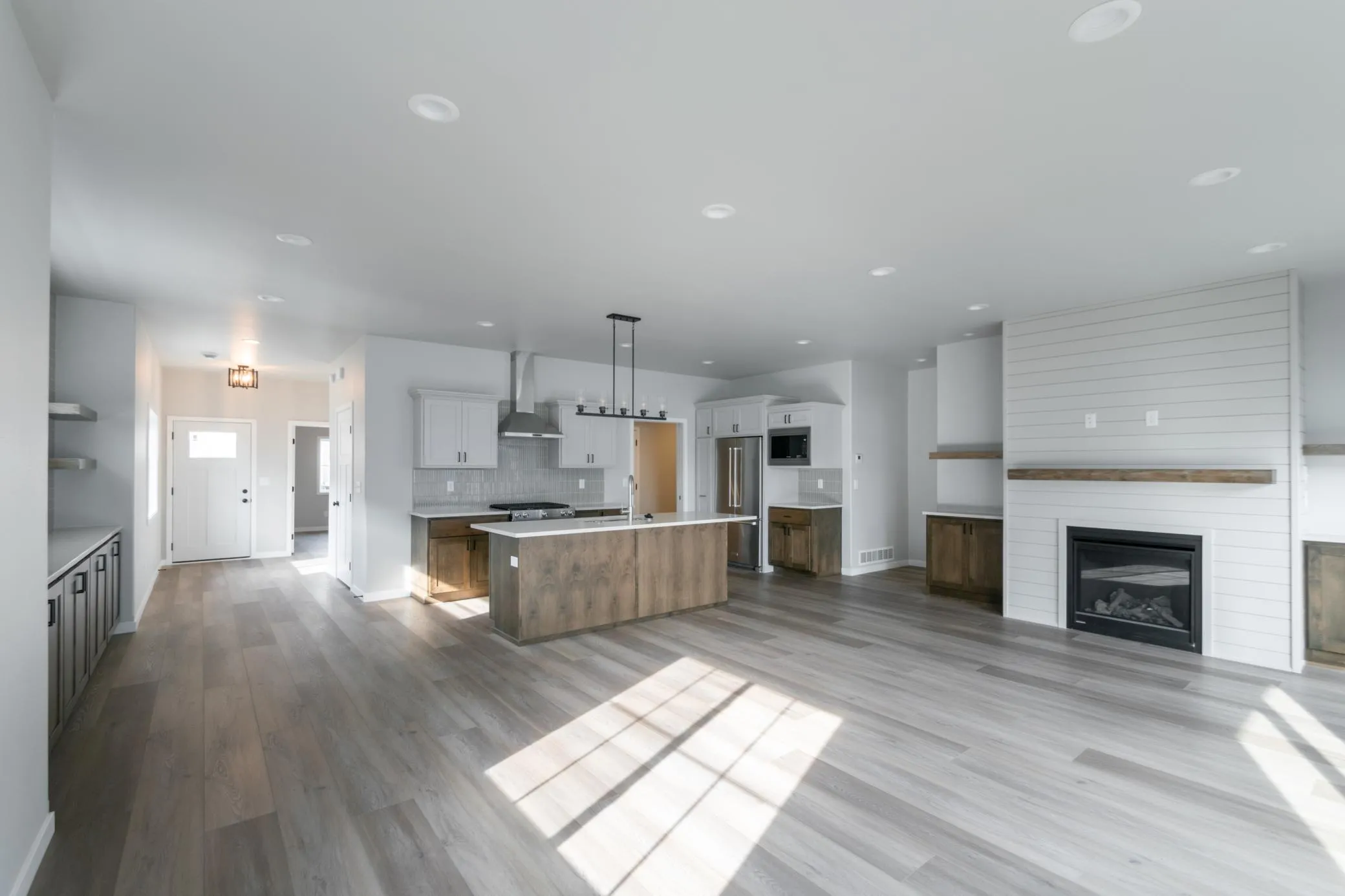 Welcome to this gorgeous one-story twinhome perfectly blending comfort and style. Featuring durable and attractive LVP flooring throughout, this home offers low-maintenance living with a modern touch. Step into the spacious kitchen, complete with a large island, laminate countertops, and sleek stainless steel appliances—perfect for cooking and entertaining. The open-concept layout flows seamlessly into the cozy living room, highlighted by a warm gas fireplace and soaring 9′ ceilings that enhance the sense of space and light. The primary suite is a relaxing retreat, boasting double sinks in the en-suite bathroom for added convenience. Outside, enjoy your morning coffee or evening BBQs on the concrete patio—ideal for relaxing or hosting friends. With thoughtful design and quality finishes throughout, this home is ready and waiting for you! Come check it out TODAY! *PHOTOS OF PREVIOUS MODEL*