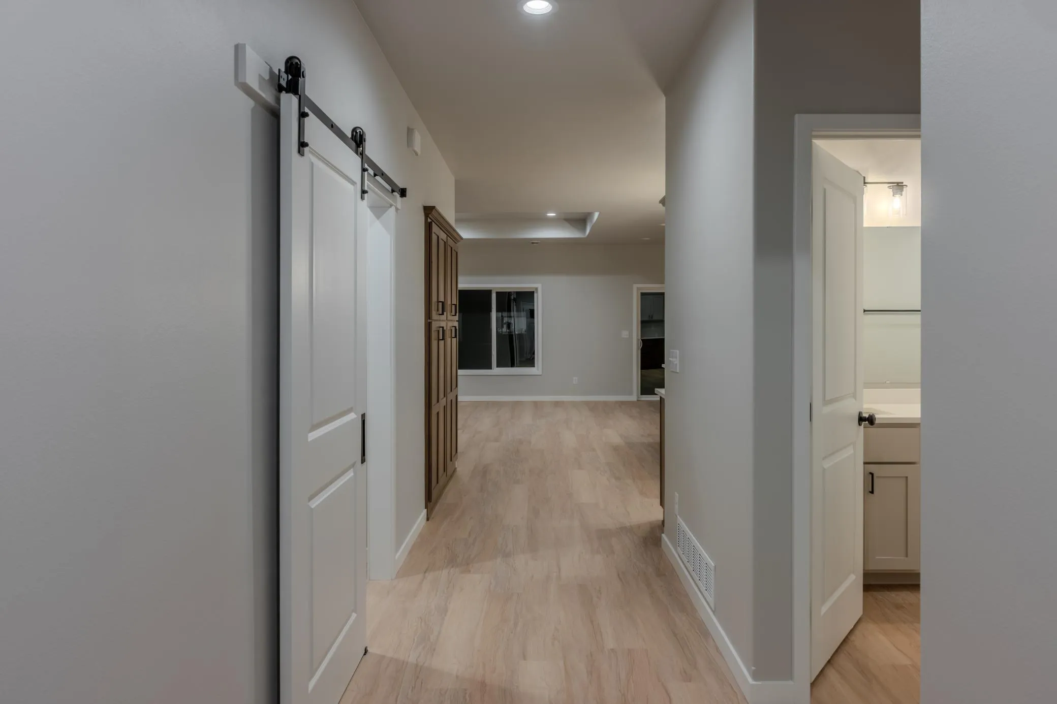 Welcome Home! Enjoy cozy evenings in the inviting living room, and appreciate the thoughtful touches like the barn door leading to a convenient mudroom and laundry area. The primary suite offers a relaxing retreat with a well-appointed bathroom, complete with double sinks for added functionality. With its modern features, practical layout, and high-quality finishes, this home offers comfort and style all on one level – perfect for easy living. Schedule a showing TODAY!