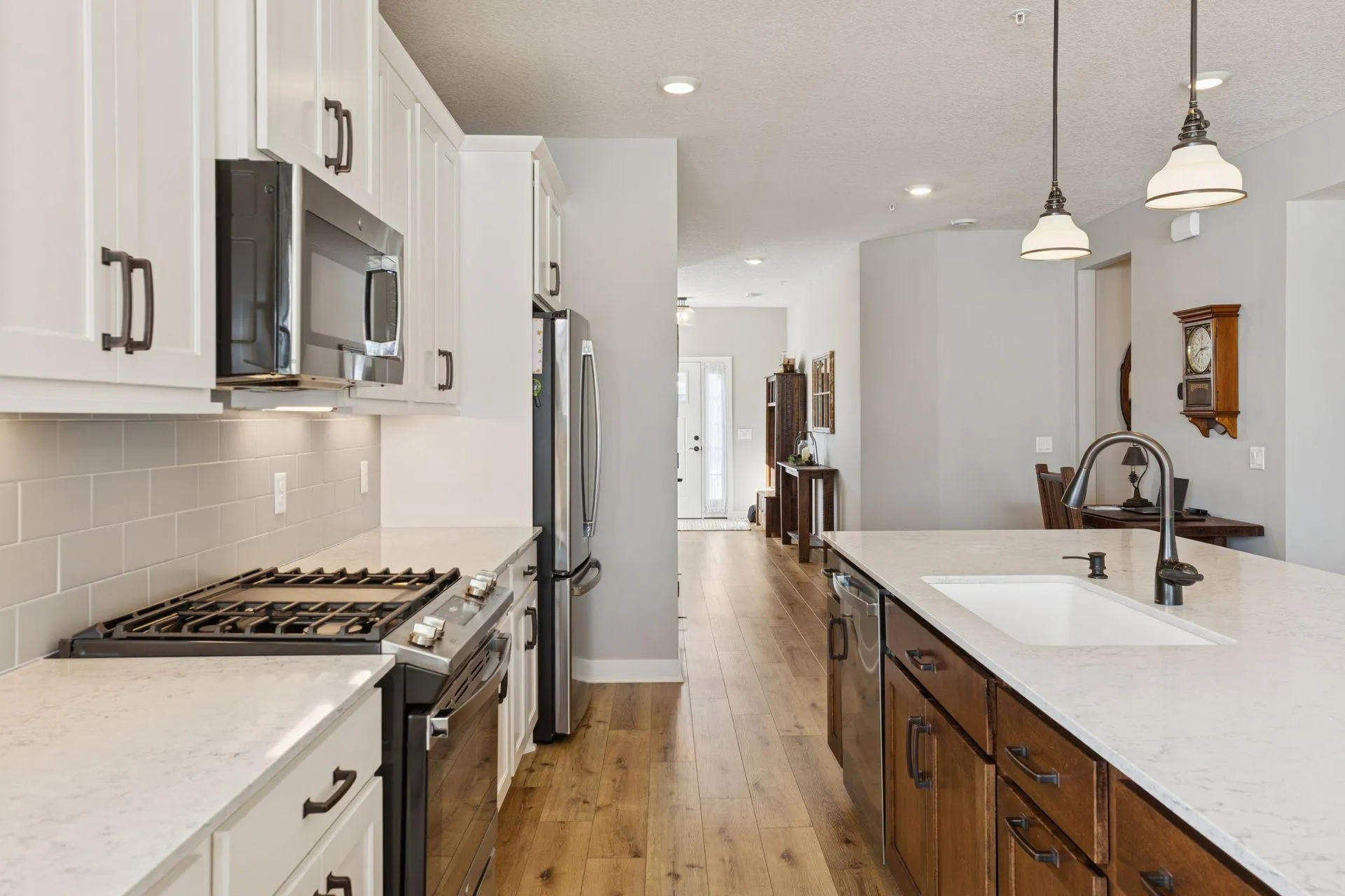 Multiple offers received- sellers are calling for highest and best offers due by 2pm on 2/14/26. Welcome to this beautiful main-level living 2024 end-unit townhome in the highly desirable Rush Creek Reserve neighborhood. Better than new, this home includes every available upgrade along with custom window treatments already in place. Perfectly positioned on the best lot in the community, it offers rare privacy with views of protected wetlands. The light-filled main level features 9-foot ceilings, upgraded luxury plank flooring, and an open-concept design ideal for both everyday living and entertaining. The gourmet kitchen is stunning, featuring a stained center island, pendant lighting, soft-close doors and drawers, quartz countertops, tile backsplash, gas range, and a custom beverage station with additional storage. The spacious main-level primary suite provides the ease of one-level living and includes a tiled walk-in shower, dual vanity, and walk-in closet. A versatile flex space on the main floor offers endless possibilities as a home office, workout area or play area for kids. Upstairs, you’ll find a generous loft ideal for a second living area, a large storage closet, a second bedroom, and an additional ¾ bath with an upgraded tile shower—perfect for guests. Ideally located just west of Highway 116, this is across from Corcoran Park and minutes to Rush Creek Golf Club and HyVee in Maple Grove.