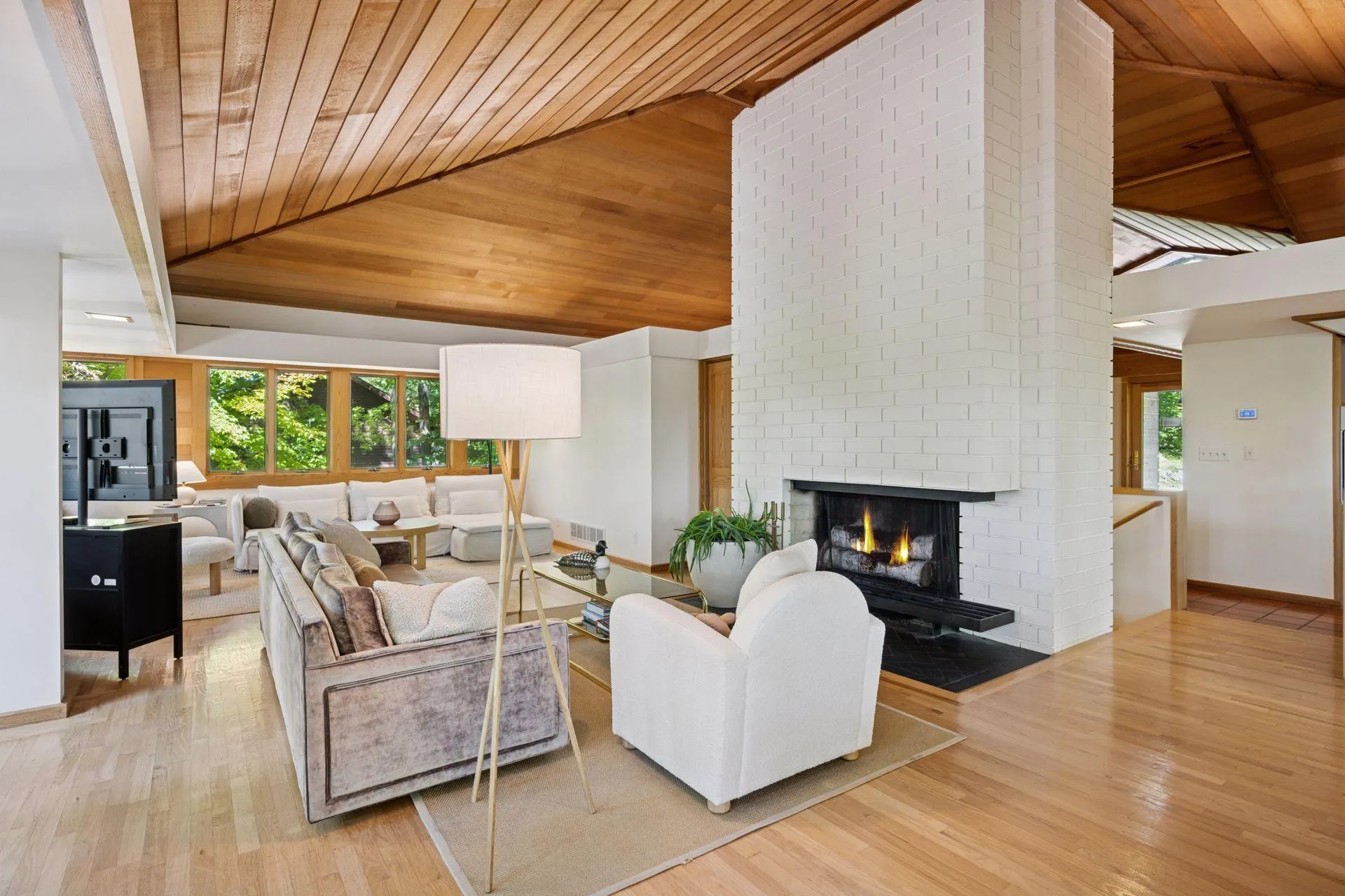 Mid-Century Modern Lake Retreat on North Pipe Lake. This cedar mid-century modern lake home is a rare find, sleek, clean, and designed with timeless sophistication. Inspired by both Frank Lloyd Wright and Japanese modern architecture, the home showcases bold straight lines, sharp angles, and a seamless blend with its natural surroundings. Large windows flood the interior with natural light, highlighting the thoughtful mix of materials: clear cedar, knotty cedar, oak, exposed brick, and tile, all chosen to create enduring beauty and warmth. The open design makes every space feel connected to the outdoors. With three bedrooms and two baths, the home features a 300-square-foot deck overlooking stunning North Pipe Lake. Here, you will enjoy the quiet of nature along with the ultimate in recreation, the 341-acre Pipe Lake Chain offers deep, clear waters perfect for swimming, boating, and fishing for walleye, northern pike, and bass. The property is nestled into the landscape with pristine rockwork and natural plantings. A 576-square-foot detached garage provides space for storage, hobbies, or a workshop. Properties like this seldom come available, do not miss your chance to own a striking architectural retreat on one of Wisconsin’s most beautiful lake chains.