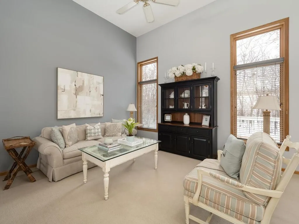 Nestled near the end of a quiet cul-de-sac in Plymouth and located in the highly sought-after Wayzata School District, this beautifully maintained home offers exceptional privacy with no neighbors directly in front or behind, a pond and wetlands across the street, and a wooded, fully fenced backyard. The open-concept design features soaring 13’ ceilings in the foyer, living, and dining rooms, plus large windows that fill the home with natural light. The updated kitchen showcases white raised panel cabinets, quartz countertops, glass tile backsplash, and breakfast bar. All three bathrooms have been recently updated. The vaulted primary suite offers a walk-in closet and private bath with dual vanity, jetted tub, and separate shower. The walkout lower level includes a cozy family room with gas fireplace, wet bar, and 4th bedroom with French doors—perfect for a home office. Enjoy abundant wildlife, apple trees, raised garden beds, a maintenance-free deck, patios front and back, insulated garage, fresh paint, new carpet, refinished hardwood floors, and updated High efficiency windows. Steps to Luce Line Trail with easy access to highways, parks, shopping, and dining. Hurry to this one and welcome home!
