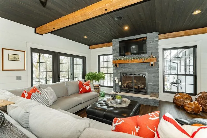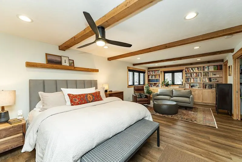The original residence blends warmth and quality craftsmanship with thoughtful modern updates, offering 5+ bedrooms and 4 bathrooms. The kitchen and living spaces were reimagined to create a true centerpiece — highlighted by an expansive island with seating, charming banquet nook, multiple inviting gathering areas, new LVP flooring, and a striking gas fireplace. Exposed wood beams, custom built-ins, and cohesive design elements create an effortless flow throughout the home. The sunroom is a true showpiece — wrapped in windows that frame the beautifully manicured, professionally landscaped backyard and serene creek setting. Fully spray-foam insulated and anchored by a stunning stone-surround fireplace with its own mini split, this four-season retreat was intentionally designed to bring the outdoors in while offering year-round comfort.