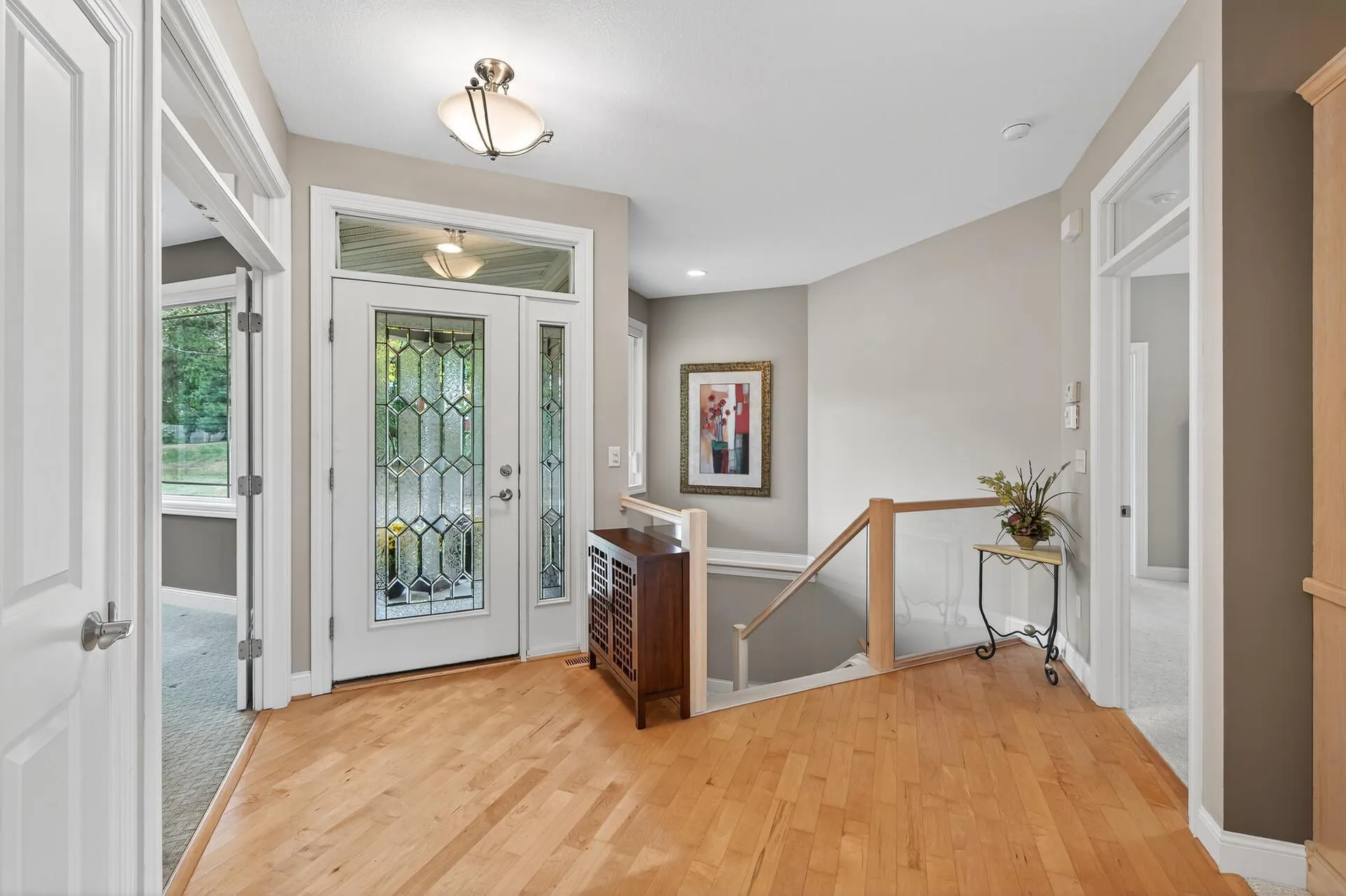 The fully finished lower level expands your living space with a large family room, wet bar, media/exercise room, third bedroom, full bath, and generous storage. Additional features include solar tubes, Hunter Douglas window treatments, under-cabinet lighting, pull-outs, whole-home sound, new lower-level carpet, tankless water heater, and sump pump battery backup. Mature landscaping and a heated, insulated 2-car garage with epoxy flooring complete this exceptional, low-maintenance home.