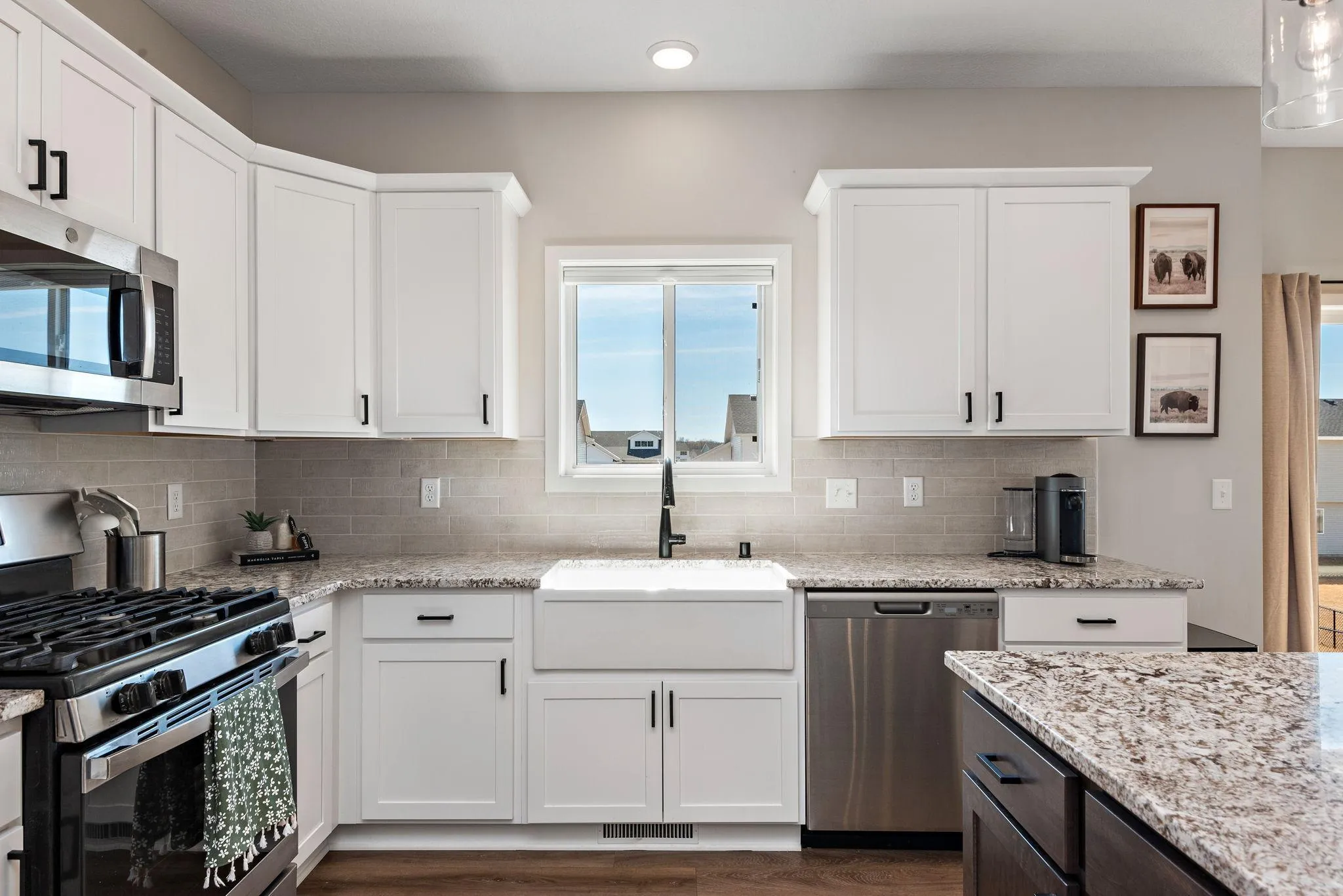 with stunning tiled shower. Desirable upper level laundry & main level office. Curated touches (kitchen