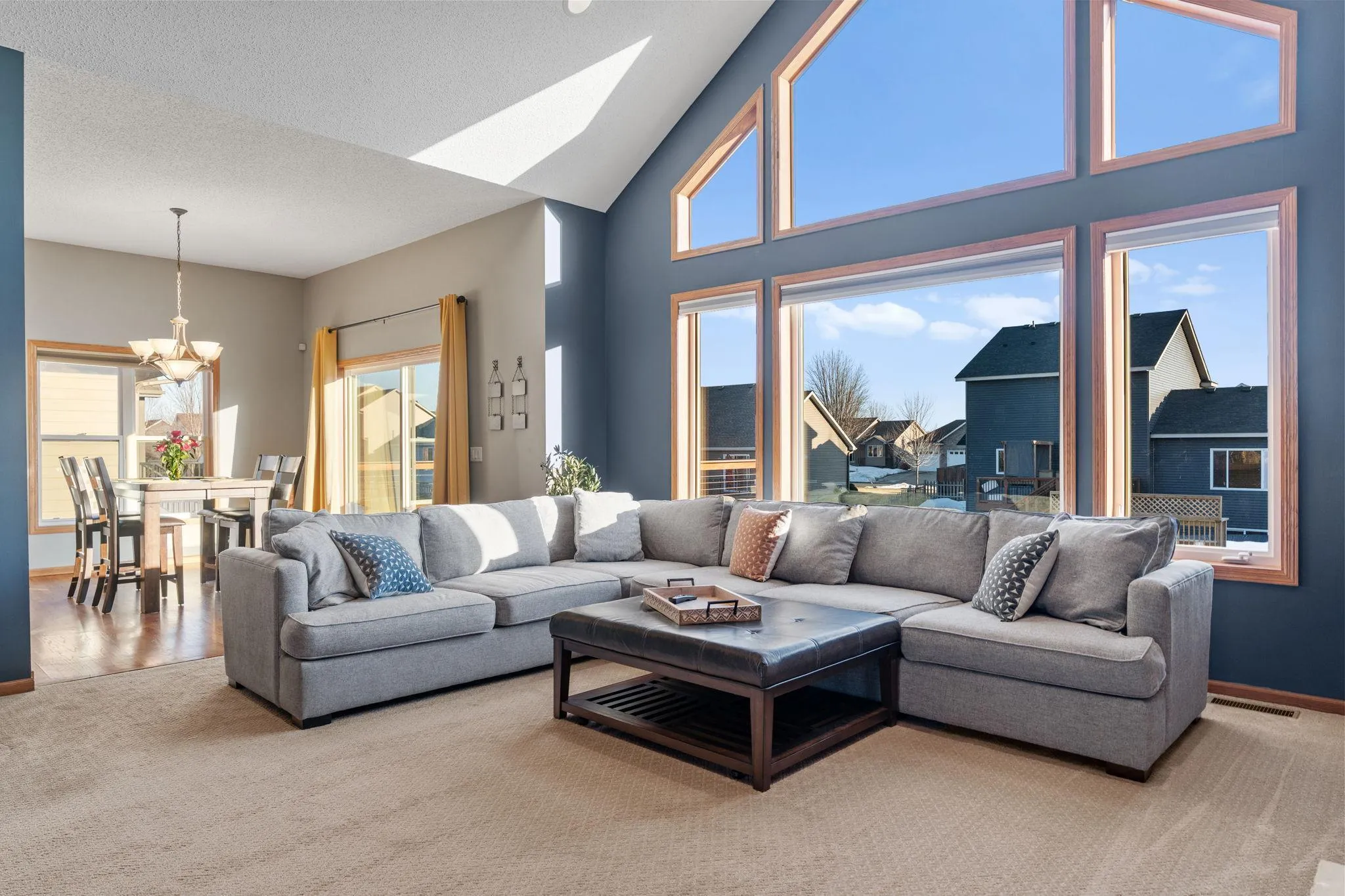 Experience over 3,600 sq. ft. of thoughtfully designed living in this stunning custom-built home featuring 4 bedrooms, 3 bathrooms, and soaring 10-foot ceilings. Entertain in the dramatic vaulted living room, challenge friends in the billiard room, perfect your swing in the golf simulator, or stay fit in the private workout room. Enjoy the maintenance-free deck with a stone gas fireplace and a heated, fully finished 3-car garage. Nestled on a quiet horseshoe street just steps from Settlers Park and close to shopping and amenities, this home blends style, comfort, and location—truly one-of-a-kind.