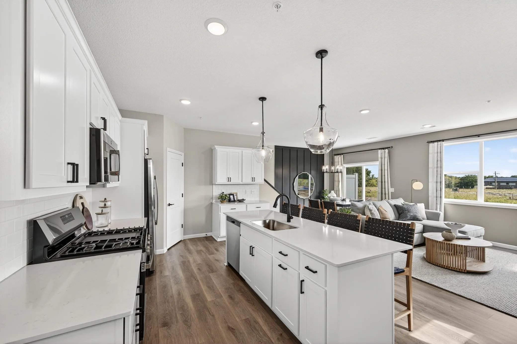 MODEL FOR SALE! Seller offering contribution toward buyer’s closing costs! JP Brooks presents the Grandview END UNIT MODEL townhome plan in Corcoran’s Hope Meadows community—a brand-new townhome development near Pheasant Acres Golf Course and just a short distance from Elm Creek Park Reserve. Experience an unmatched outdoor lifestyle with miles of trails, lakes for kayaking, and year-round activities. Enjoy peaceful living with the conveniences of nearby shopping, dining, and easy access to major roadways connecting you to the Twin Cities and beyond. The main level features a spacious living room with an electric fireplace, open dining area and roomy entryway. The kitchen showcases white cabinetry with stainless steel appliances, a walk-in pantry, tile backsplash, gas stove, large center island with single basin sink and quartz countertops throughout the home. Half Bathroom on main level. The upper level includes a loft area, laundry room and 4 Bedrooms with walk-in closets. The primary suite offers a vaulted ceiling with ceiling fan, double sink vanity, luxury tiled shower, linen closet and a huge walk-in closet! The exterior of this end unit offers an exclusive side yard in addition to it’s 10’x6’ backyard patio for outdoor enjoyment and HOA-maintained landscaping and snow removal for low-maintenance living. Onsite-finished trim for a high-quality look. Come tour today!