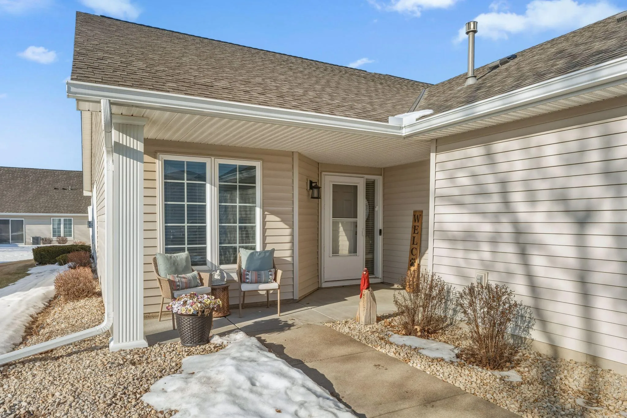 This is the home that you have been waiting for! Gracious and welcoming single level living. This home is well maintained, superbly clean and move-in ready. Furnace and A/C replaced 4 yrs ago. The sunny front porch welcomes you home and is a perfect place for a hot cup of morning coffee. The bright airy foyer leads into the open vaulted living and dining room. These spaces will be your favorite for entertaining or just enjoying quiet everyday moments. The well appointed kitchen is just off the foyer at the front of the home. Plenty of space for cooking everyday meals or creating holiday memories. This home features a large primary bedroom at the rear of the home along with a guest bedroom at the front of the home. The primary bedroom offers a private ensuite bathroom and large walk-in closet. One special feature of this home is the sitting room at the rear of the home that overlooks the backyard and patio. It feels like a sunroom with walls of windows and it will certainly be one of your favorite spots in the home. The laundry room is well located by the garage entry and kitchen. There is even a storage room. This home checks all of the boxes for easy and effortless single level living. Welcome home! Selling agent is related to seller.