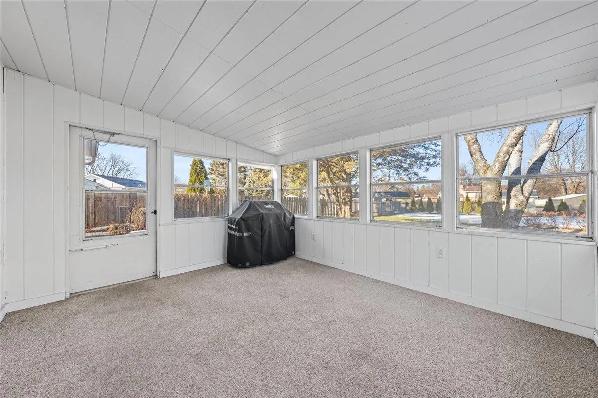 Nestled on a quiet, low traffic street, this beautifully maintained and updated 1964 ramble blends mid-century charm with modern updates, featuring four spacious bedrooms, two modern 3/4 bathrooms and a full bathroom, and gleaming hardwood floors throughout the main level. The heart of the home is the open main level living space that seamlessly blends the living and dining space while featuring sightlines to the front yard and the very private backyard retreat. A premier feature not commonly found in this era home is the primary suite, which boasts a gorgeous private ensuite and a direct walkout to the backyard patio. The three-season porch offers a seamless connection to the outdoors from the living space. The versatile lower level serves as an ideal secondary living space or guest suite, complete with a large fourth bedroom, a deluxe 3/4 bathroom, and a dedicated laundry area. Set on an impressive, oversized fenced-in lot, the exterior is a true private oasis highlighted by professional accent landscaping, a storage shed to free up additional space in the heated garage, and ample space for gardening or entertaining.