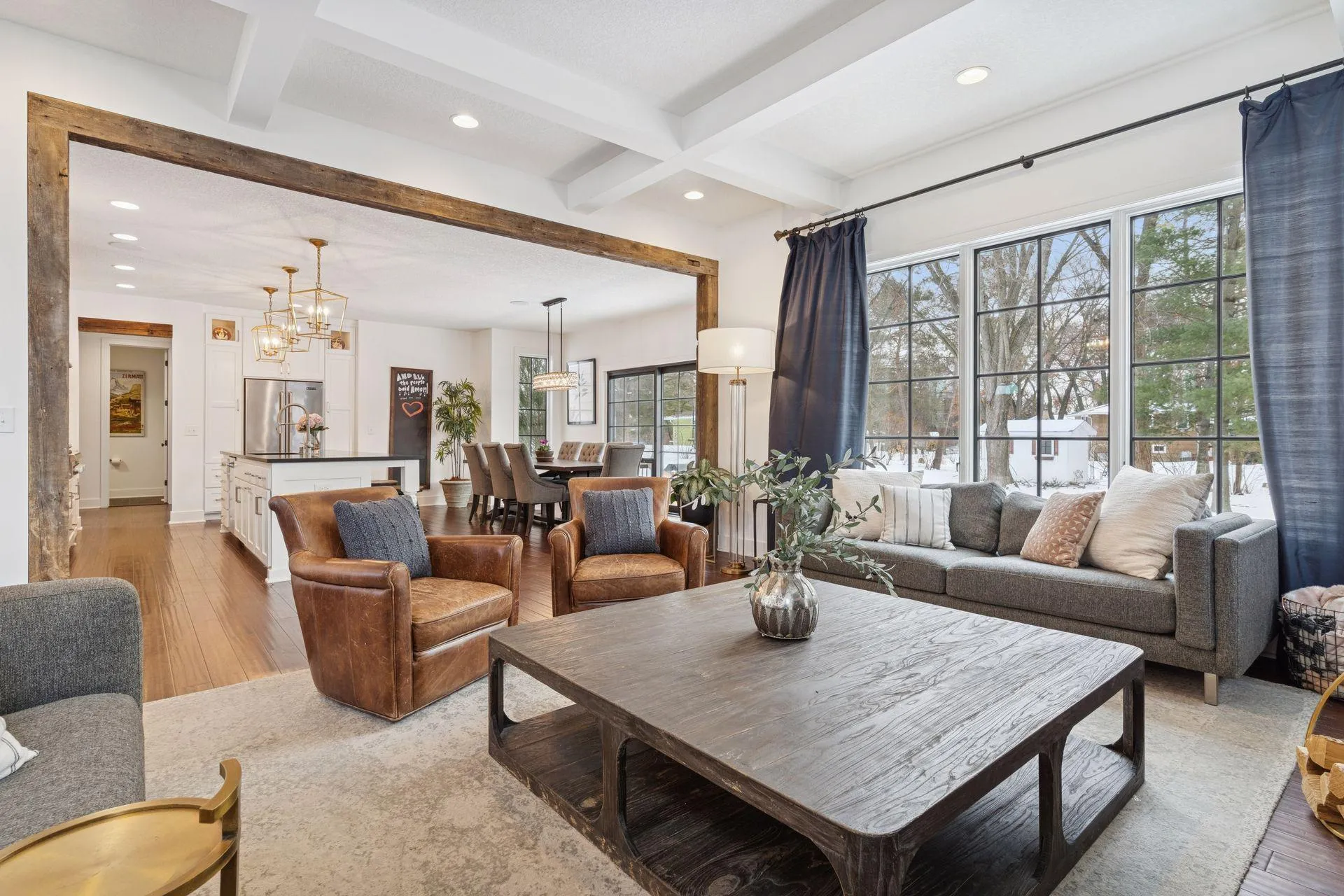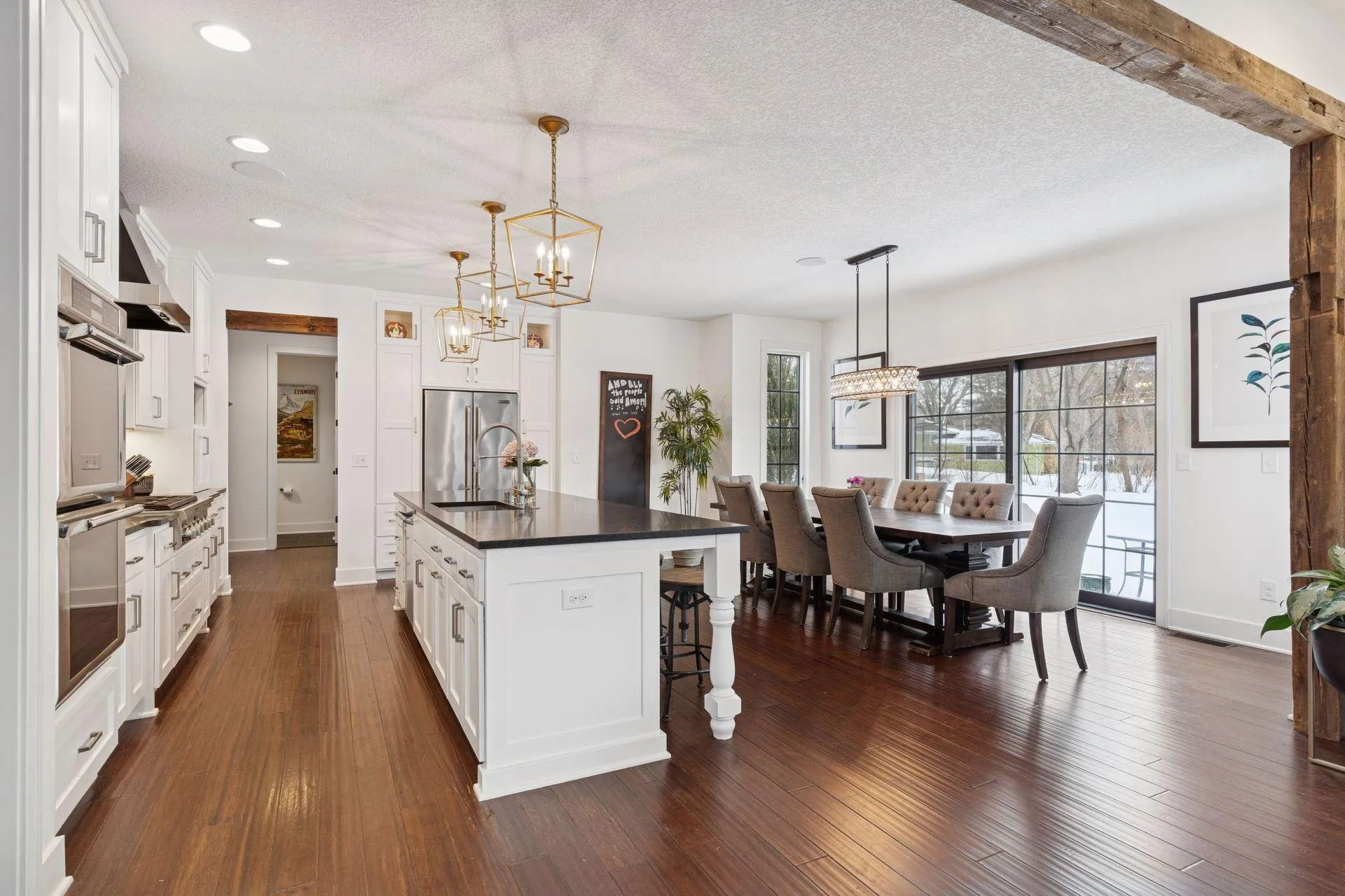 Impeccable Edina home in prime Countryside. Step into the open concept main level featuring custom, high-end finishes. Freshly painted throughout for a move-in ready experience. Living room with coffered ceiling, gas fireplace and floor-to-ceiling windows. Elegant kitchen with gorgeous cabinetry, gourmet appliances, and center island with seating for five. Convenient walk-in pantry with beverage fridge, sink and dishwasher. Highly functional dining area with gorgeous outdoor views. Flex room on main level could function has a fabulous office, exercise room, or playroom. Spacious mud room offers locker storage and desk space that doubles as a drop-off zone from the 3-car garage. Four bedrooms up, including luxurious primary with ensuite bath and walk-in closet. Other conveniences include a full bathroom, loft area and spacious laundry room. Lower level is ideal for entertaining, featuring family room with fireplace, wet bar, and additional space for a game table. Fifth bedroom and ¾ bathroom also on lower level. Home is seated on a private, half-acre lot with mature trees and paver patio. Incredible location in desirable Countryside, within walking distance to multiple parks and Countryside Elementary. Quick highway access for a simple commute. This gorgeous property is well-suited for elevated everyday living and entertaining.