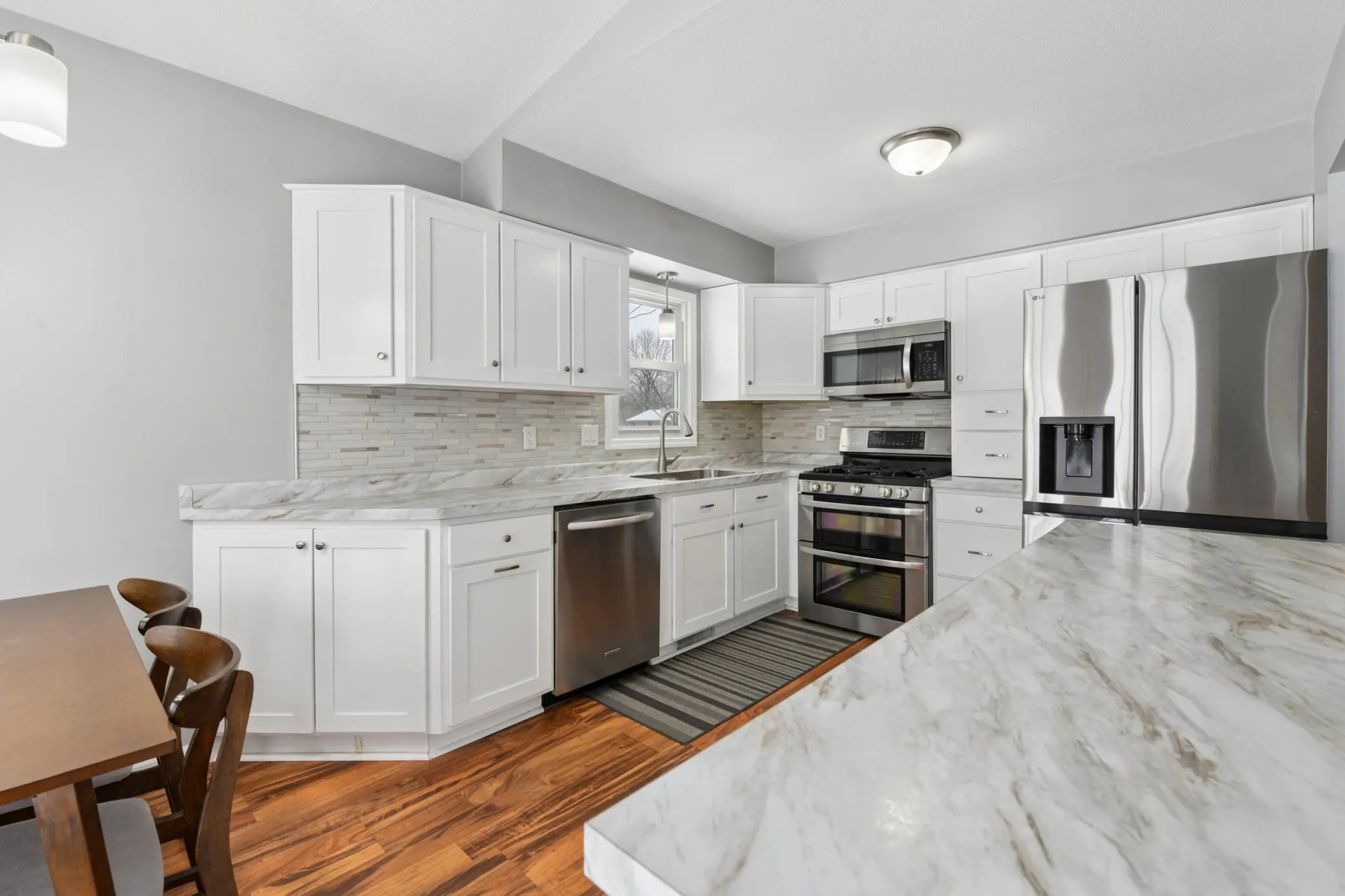 Welcome to this beautifully maintained split-level home, featuring a unique and spacious entryway with a rare secondary doorway that adds both conveience and charm. With 4 bedrooms and 2 bathrooms, this home offers a flexible layout perfect for everyday living and entertaining. The upper level includes an open living area with vaulted ceilings and abundant natural light. The updated kitchen features stainless steel appliances and modern finishes, and French doors lead to a large, two-tier deck-ideal for gatherings, grilling, or simply relaxing as you overlook the expansive, fully fenced backyard. Back inside, the lower level includes two additional bedrooms, a second bathroom, a versatile flex area with a dry bar, and a large laundry/utility room. Storage is exceptional, with a 2-car attached garage and a spacious 23×11 shed perfect for tools, a ride-on lawnmower, and more. Conveniently located and set on a generous .71-acre lot, this home offers the perfect blend of functionality, comfort, and outdoor space.