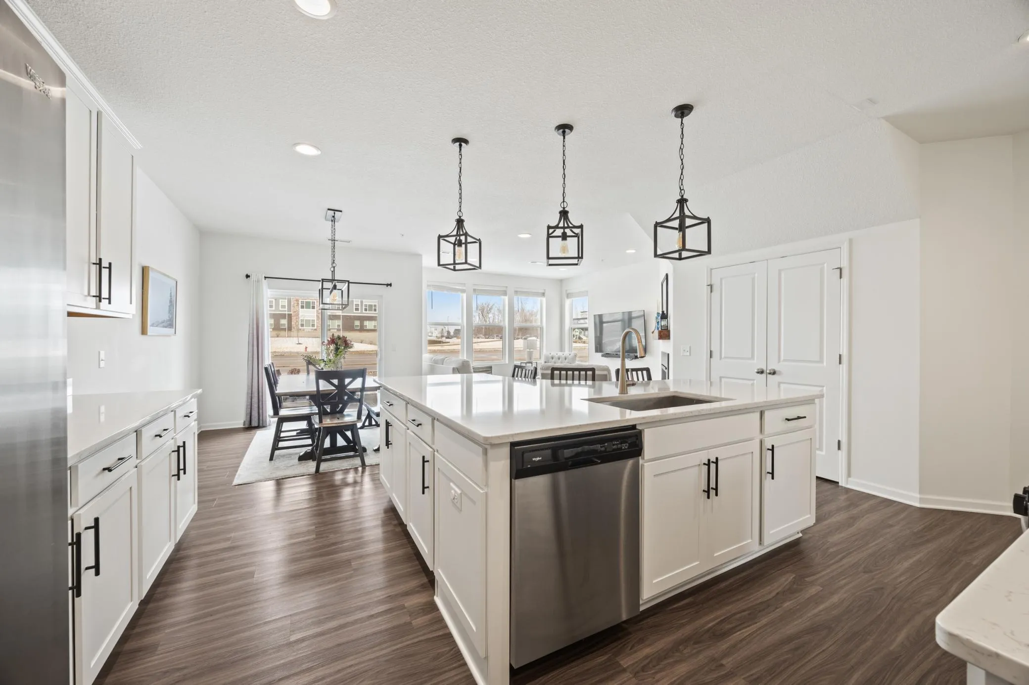 Welcome to this beautiful move-in ready end-unit townhome in Maple Grove. Built in 2021 by Pulte Homes. This home features a bright open layout with modern finishes. The kitchen boasts a large center island with pristine quartz counter tops, stainless steel appliances, pendant lighting, and plenty of storage space. Beautiful LVP flooring covers most of the main level. The living space features a cozy fireplace and lots of natural light. Off the main level informal dining space is an outdoor patio. Upstairs features 3 generous sized bedrooms with washer and dryer off the hallway. The primary suite offers two walk in closets, a primary 3/4 bath, and dual sinks. Conveniently located on the outskirts of Maple Grove while being close enough to all the city has to offer.