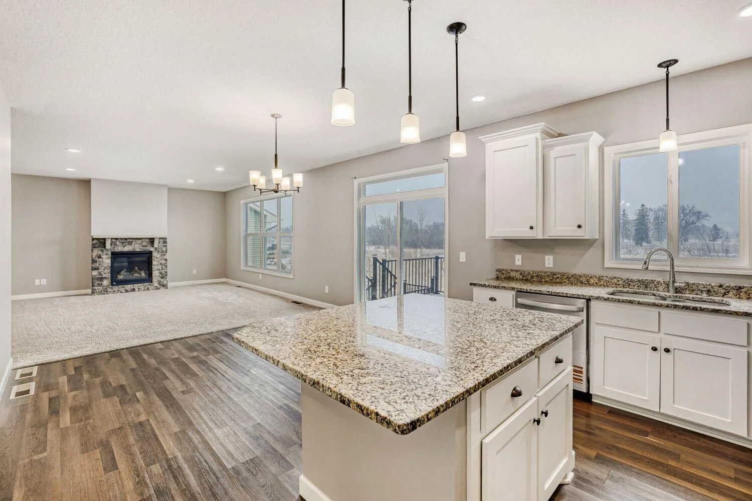 Built in 2020, this well-maintained 4-bedroom, 3-bath home offers 2,600 finished square feet with a functional open-concept layout. The kitchen features stainless steel appliances, a large center island, and ample cabinet space, opening to the dining area and living room with a gas fireplace.