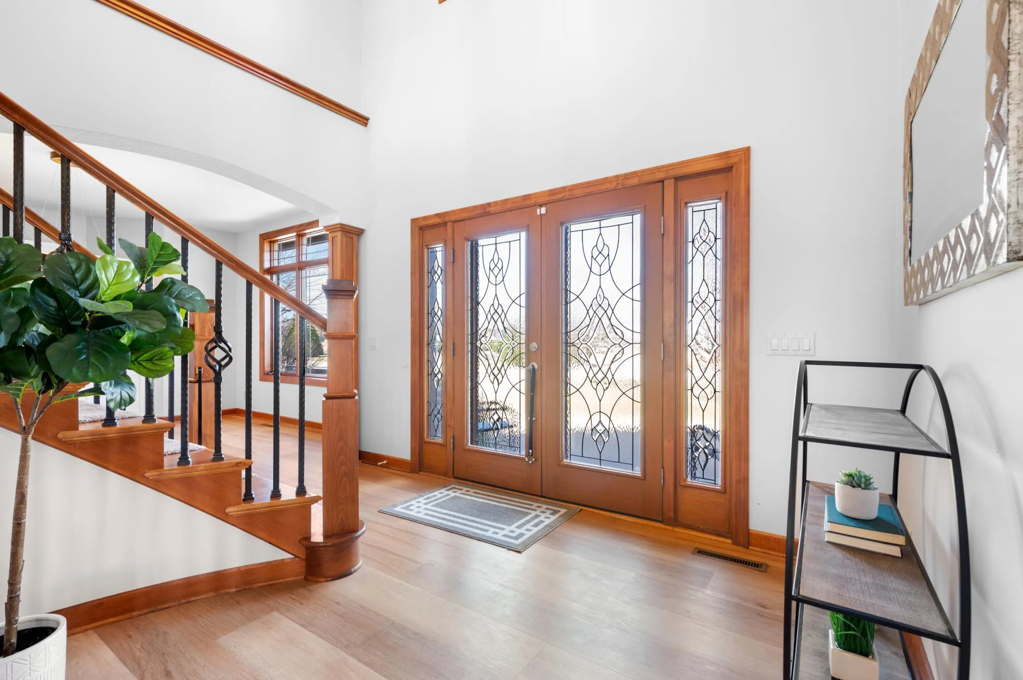 This exquisite 2-story walkout home sits on a large lot in the highly coveted Somerby Golf Community and the Epperstone Enclave cul-de-sac, directly on Hole 16 Fairway, offering breathtaking panoramic views of the golf course, clubhouse, ponds, and nature Audubon. With over 5500 Sq Ft of finished living space, this home features 4 bedrooms (with a 5th possible), 4 bathrooms, a 3-car garage with an EV charger, and an additional 3-car pre-stressed space below, perfect for storage, golf cart, or a workshop. The home is designed to impress, with luxurious outdoor spaces including a large half-circle maintenance-free deck, a covered 3-season deck, and a spacious concrete patio that provide the perfect setting to enjoy the stunning views. As you enter, you’ll be greeted by all new LVP flooring throughout the main level. The large entryway leads to an expansive great room with large windows that showcase the spectacular golf course views and natural light. The updated kitchen is a chef’s dream with white painted cabinets, quartz (Cambria) countertops, and stainless steel appliances. The main floor also features a large office with two custom desks, both formal and informal dining areas, and a spacious laundry room conveniently located off the mudroom. The upper level is home to a luxurious 850 Sq Ft master bedroom retreat, complete with a large walk-in closet featuring custom shelving and a spa-like bathroom suite. The master bath offers dual vanities with new quartz countertops, a 2-person jetted tub, and a walk-in 50 Sq Ft steam shower with remote start. This level also includes a second bedroom with its own walk-in closet and private full bathroom. The lower level provides additional living space, with two more bedrooms, a 3/4 bathroom with tiled shower, and a large family room featuring a stone-surround gas fireplace and a wet bar. There’s also a private wine room ideal for a small hangout space, and a temperature/humidity controlled wine room perfect for wine enthusiasts. Step outside onto your expansive patio to enjoy beautiful evenings overlooking the golf course including the vast landscaping complete with 2 apple trees. This home offers an incredible blend of luxury, space, and location. An absolute must see!