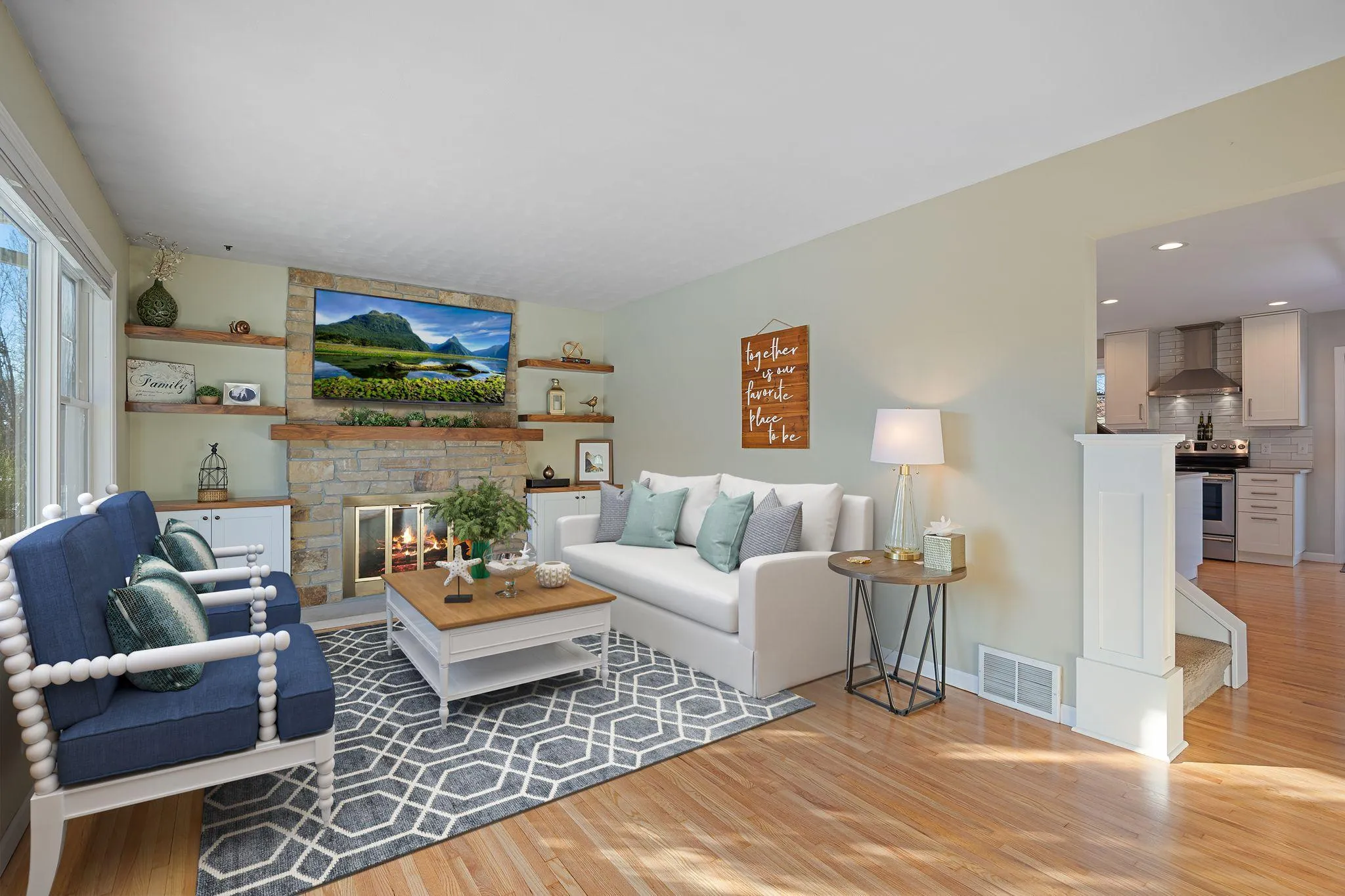 The lower level features an L-shaped family room with a cozy fireplace and built-in bar, providing the perfect setting for movie nights or celebrations. A convenient 3/4 bath adds functionality to the space. From unique architectural details to thoughtful updates, this home stands out. Don’t miss your chance to make this exceptional property yours.