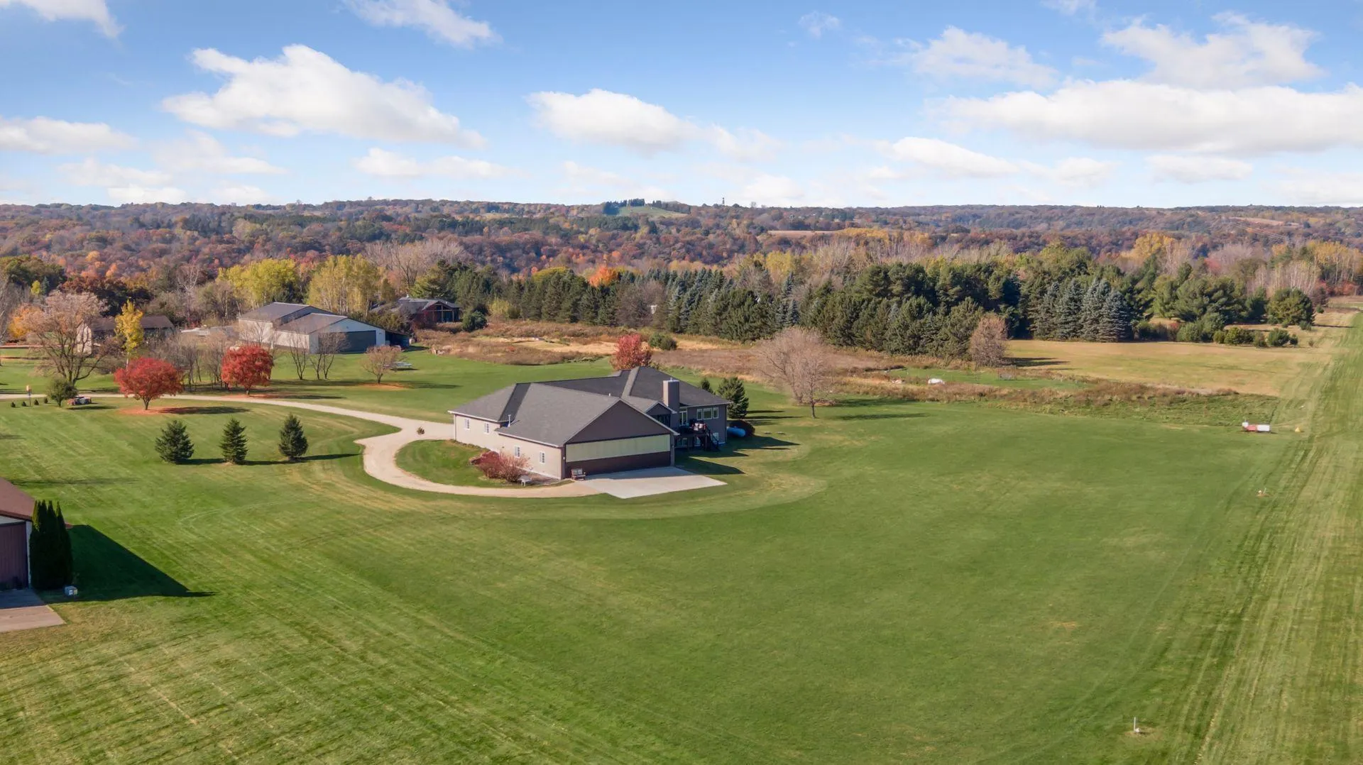 Step inside to a flood of natural light and sweeping views of the manicured airpark grass runway. Elegant architectural details, from cove-lit ceilings, a wood-burning fireplace to handcrafted cabinetry and natural stone surfaces reflect Hartman’s signature artistry and designer finishes. The main-floor primary suite offers a serene retreat, complemented by a second spacious bedroom and a private office. The kitchen opens seamlessly to inviting living and dining spaces, flanked by the three-season porch with immediate access to the tranquil yet expansive low maintenance deck, ideal for entertaining or quiet evenings at home. The lower level is designed for relaxation and fun, featuring a wet bar, exercise room, spa-style bath, media and family area, guest suite, and even a hidden play space. Rough ins are prepared for a potential fifth bedroom, if desired. A secondary staircase connects directly to the private heated hangar for effortless convenience. Enjoy year-round indoor-outdoor living overlooking your 5-acre retreat. A 6-car garage adjoins the home, step down a few steps to the attached 1,760 SF heated airplane hangar/shop with wet bar and bathroom, making this home ideal for pilots, boaters, golf enthusiasts, or for horse lovers; an outbuilding is allowed to be built. Lifestyle – The St. Croix Riviera Association offers a special lifestyle with private access to a sandy beach, marina with dock slips, and a charming beach house for gatherings or swimming adventures. Just minutes from Hudson, River Falls, and Prescott, the community sits across from Afton State Park and near Kinnickinnic State Park, offering endless recreation along the scenic St. Croix River, a national treasure known for its beauty, serenity, and fun in the sun. Take your golf cart down to the beach to join family in boating, grilling, jet skiing, and finish the day taking in the sunsets. Association dues here are refreshingly modest, $575 per year, including airstrip, beach, and marina. Bring your airplane, boat, or horses and experience a home that fuses luxury, lifestyle, and freedom in one remarkable address.