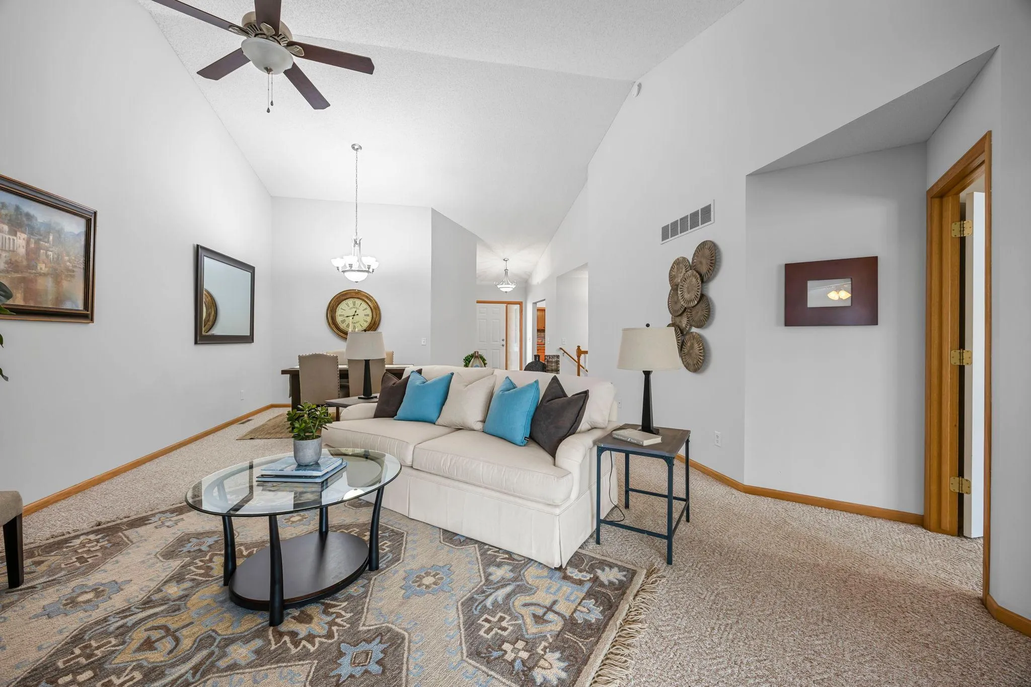 Welcome to this spacious townhome offering comfortable one-level living with vaulted ceilings in the living and dining area that create an open and airy ambiance, complete with a cozy fireplace ideal for relaxing evenings. Enjoy the bright four-season porch that opens onto a deck, perfect for entertaining or unwinding while overlooking the secluded, wooded backyard. The lower level features a spacious gathering room, ideal for family activities or a home theater, alongside a large storage room/workshop that provides ample space for projects or extra belongings. Nestled near downtown Prior Lake, residents benefit from convenient access to shopping, scenic hiking trails, and beautiful lakes. This home combines natural tranquility with functional living spaces for an exceptional lifestyle.