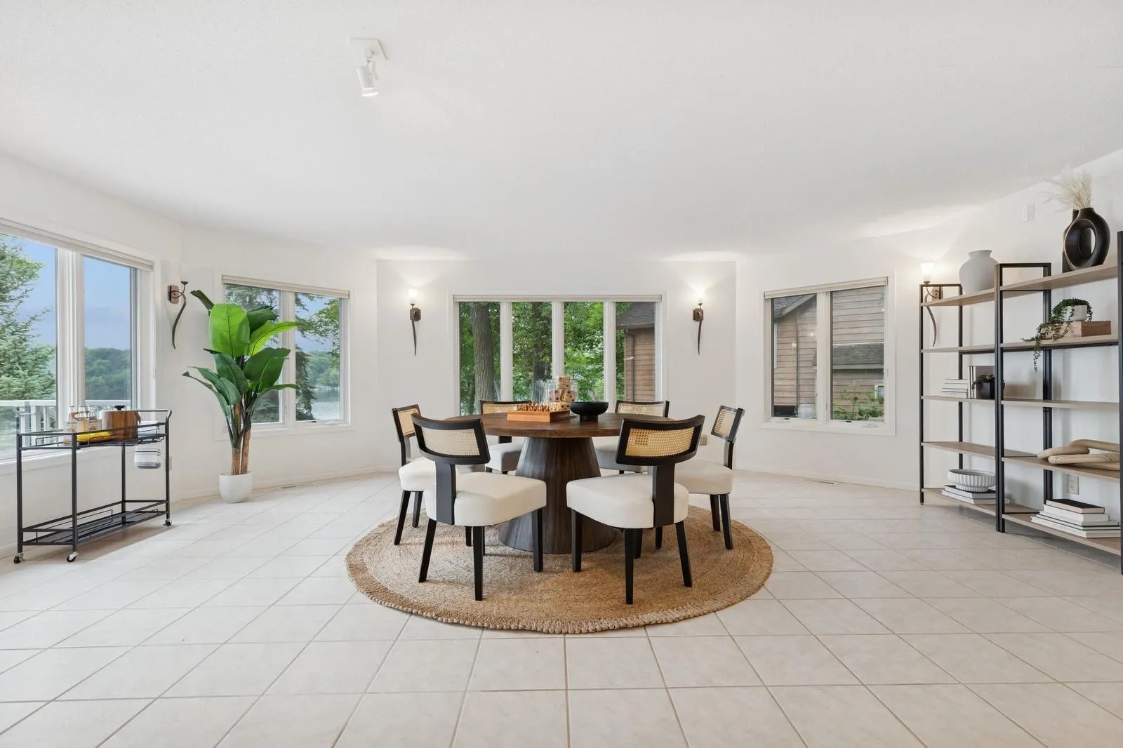 The lower level includes a recreation room with walkout access, as well as an additional room that can function as an office or art studio with lake views.