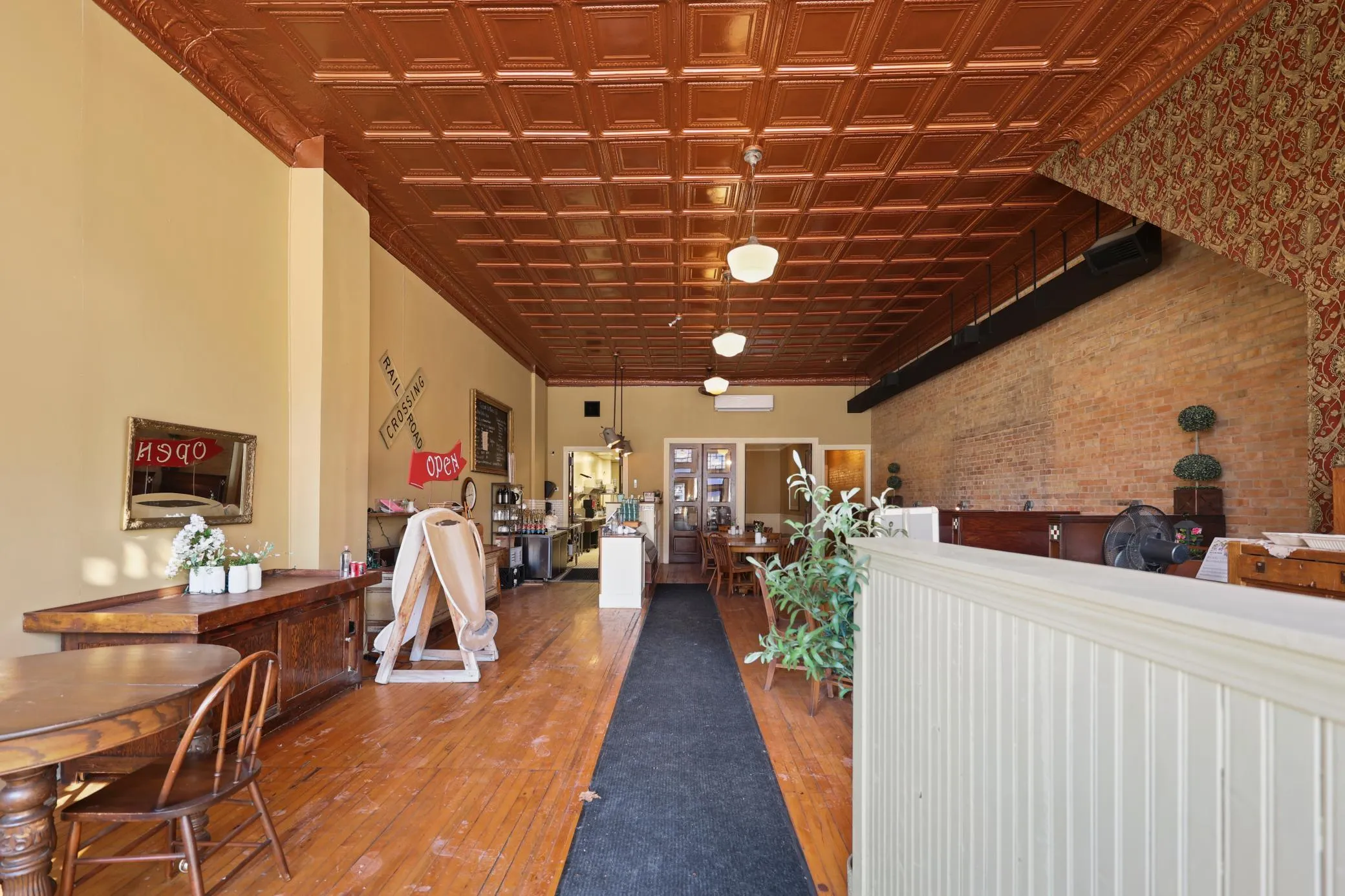 Prime downtown commercial kitchen available for new vision and new build-out! This spacious 3,500 sqft property features seating for over 50 guests. The kitchen comes partially equipped with essential appliances, restaurant equipment and furnishings allowing a new owner to hit the ground running. The space features beautifully re-stored vaulted tin ceilings, original hardwood floors and exposed brick finishes. With years of restaurant experience, the owner is willing to contribute his knowledge of kitchen renovation and planning to help a new business navigate the complexities of licensing and compliance. A new proprietor should be able to hit the ground running with reasonable capital expectations and investment. The space benefits from high foot traffic and easy accessibility, making it ideal for both new ventures and established brands seeking a strategic growth location. Flexible leasing terms can ensure a seamless transition, while allowing business owners to focus on creating an exceptional dining experience. With its central location and close to turnkey setup, this is a perfect opportunity for any entrepreneur ready to expand into or launch their latest culinary aspirations.