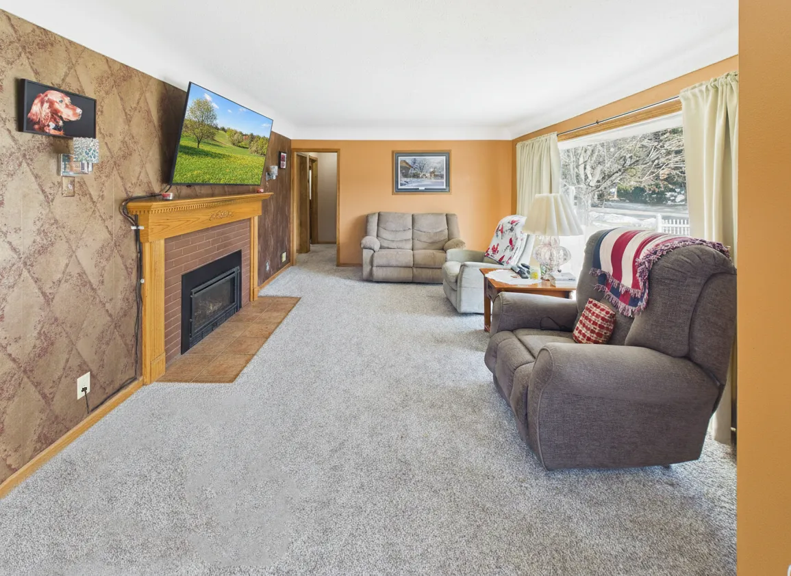 The home features a spacious living room and dining area with a nice, functional flow and abundant natural light throughout. Two fireplaces add warmth and character, while the large open space in the lower level offers great flexibility for a family room, workout space, or future finishing potential.
