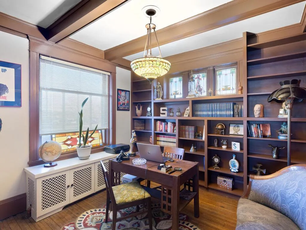Inside, you’ll find stunning hardwood floors, detailed millwork, rich built-ins, and light-filled living spaces that showcase the home’s historic craftsmanship. The updated kitchen and baths blend seamlessly with the original charm, including a spacious upper-level full bath featuring a double shower for added convenience. Generous bedrooms, including one with an attached half bath, provide comfort and flexibility for modern living.